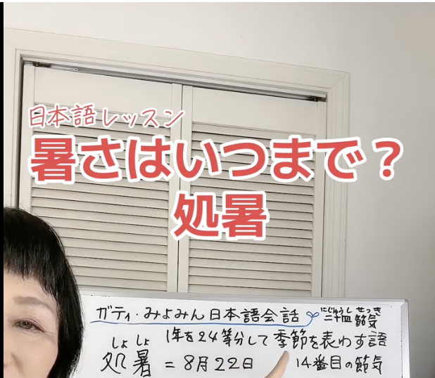 【暑さはいつまで?“処暑” When Does the Heat End? "Shosho"】日本語レッスンJapanese lesson 190 処暑って何? 「毎日暑いんですけど、この暑さはいつまで続くんでしょう?」よく聞くこのつぶやき。私も「いつまで続くんだろう?」と思っていたので、ちょっと調べてみました。すると出てきたのが「処暑(しょしょ)」という言葉。 これは、1年を24の季節に分けた「二十四節気(にじゅうしせっき)」のうち […]