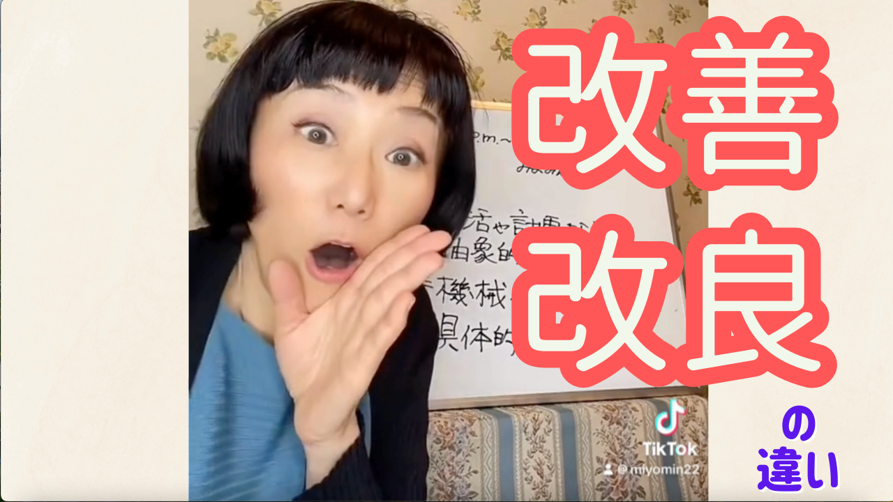 「改善」と「改良」の違いについて 改善は、生活や計画など抽象的な物事 に対して使う。改良は、機械や品種など具体的 な物事に対して使う。おお びっくり!こういうしっかりとした使い分けが、あったのでした!! 池本美代子YouTubeチャンネル youtube.com/@miyomin 池本美代子のTikTok Miyomin Voice tiktok.com/@miyomin22